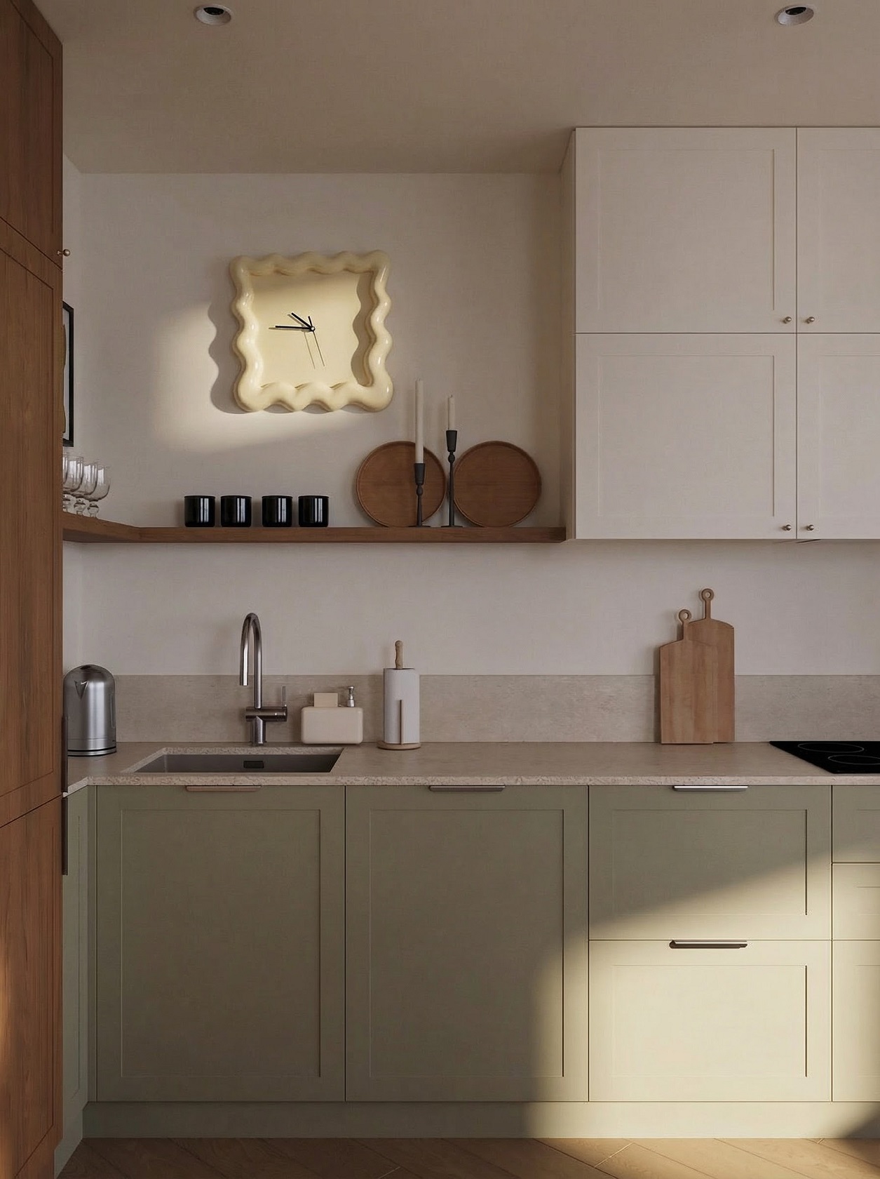 атмосфера и визуальный порядок. Мягкая форма хорошо сочетается с кухонными