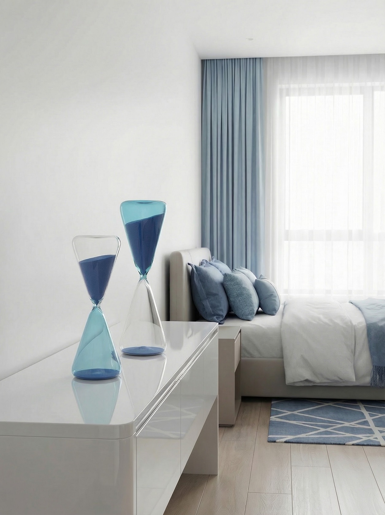 объект: изысканные стеклянные песочные часы добавляют интерьеру глубину и