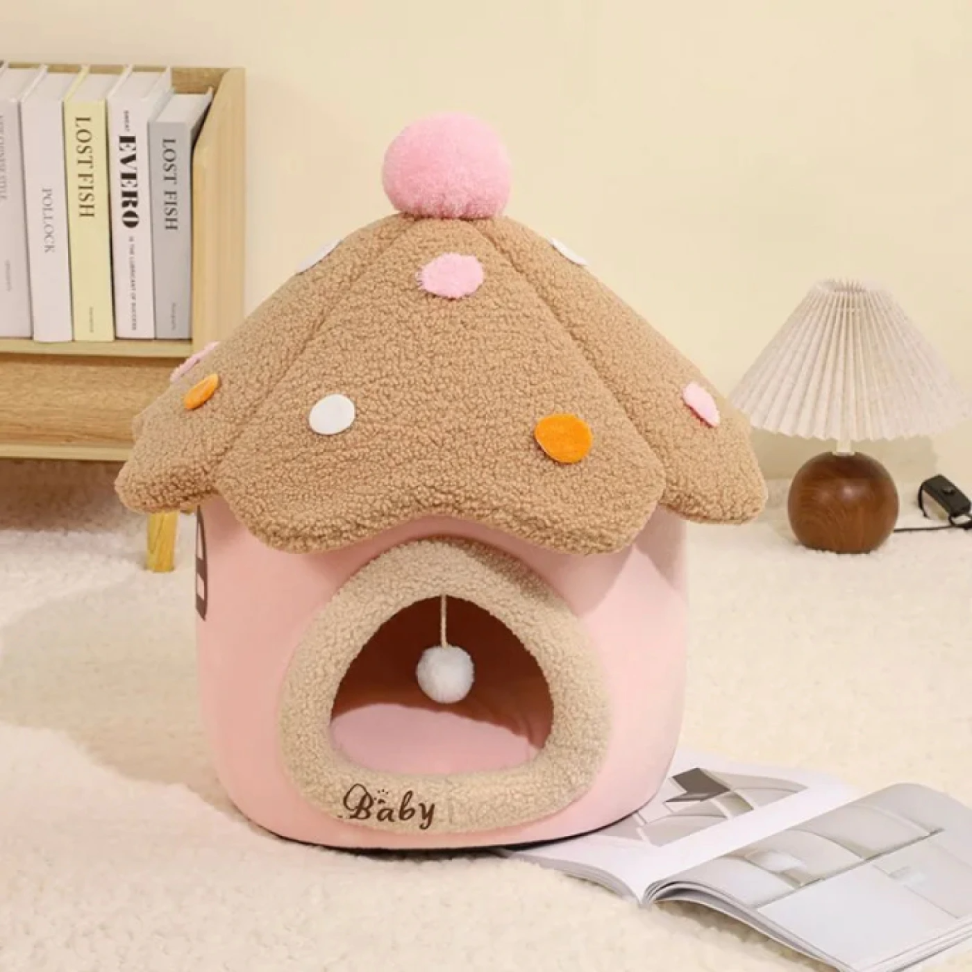 Некоторым кошкам нужно полностью спрятаться от внешнего мира. Для интровертов, пугливых питомцев или кошек, которые любят уединение, идеально подойдет лежанка-домик.