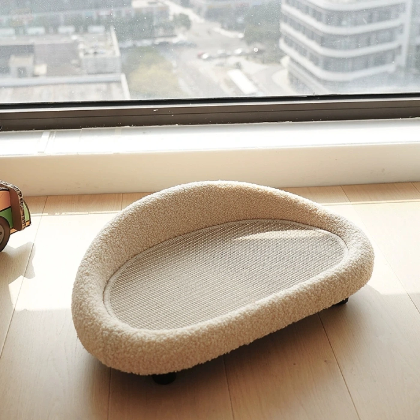 Лежак выполнен из сизаля — прочного натурального материала, устойчивого к когтям, хорошо держит форму и не вытягивается со временем, даже если питомец использует его и как спальное место, и как когтеточку. Ухаживать за лежаком просто: сизаль легко чистится и долго сохраняет опрятный вид.