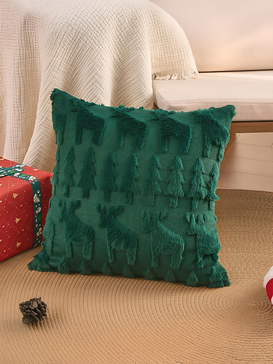Добавьте к пледу фактурные наволочки глубокого зелёного цвета или насыщенного красного цвета