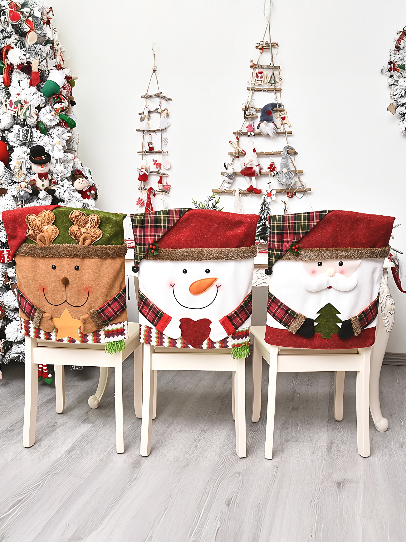 Текстильные чехлы на стулья с Сантой или с мордочками оленя и снеговика удивительным образом преображают обычный стол в праздничный.