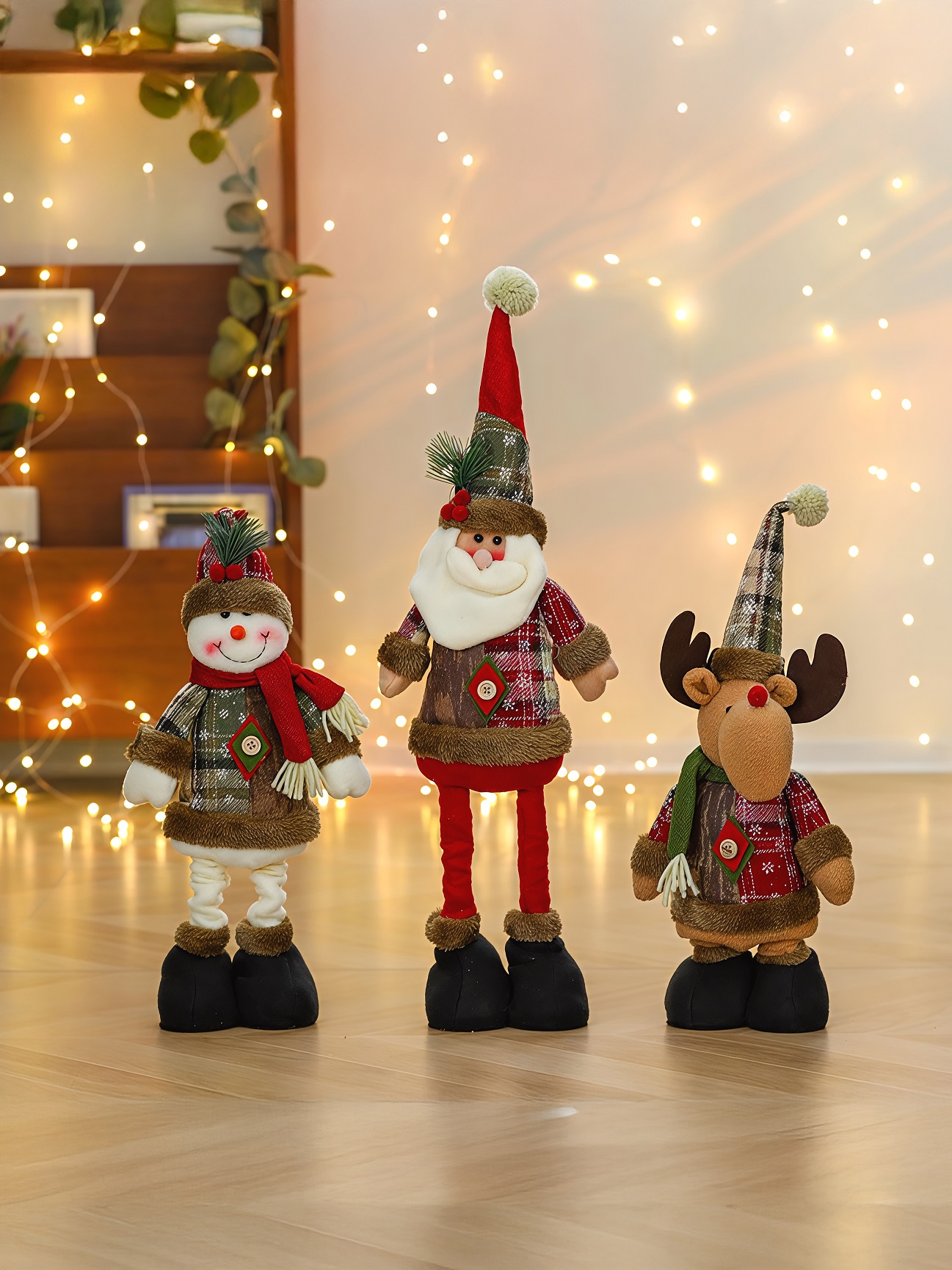 Новогодние фигурки — снеговик, Санта и олень — больше не просто игрушки для детской. Поставьте их на комод, тумбу у телевизора или на подоконник, создавая небольшие тематические сценки: троица персонажей хорошо смотрится на фоне гирлянд и полок с книгами, добавляя интерьеру лёгкого юмора и «оживляя» пространство.