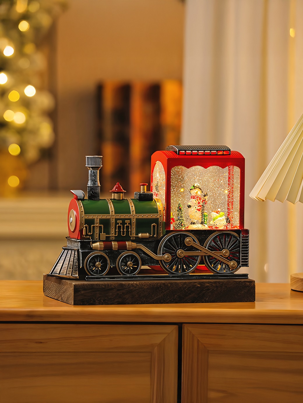 Декоративный поезд с вагоном-снежным шаром создаст маленький сказочный рождественский мир, где каждая остановка поезда — повод придумать новую праздничную историю.