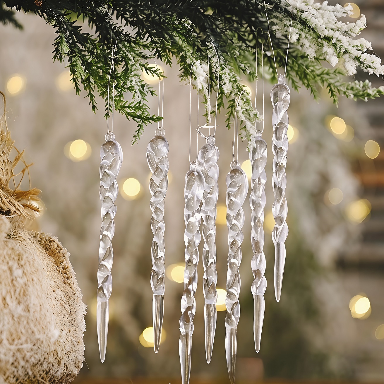 Тонкие прозрачные сосульки, развешанные на еловых ветках или на окне, добавляют интерьеру зимней свежести и лёгкого мерцания, не требуя дополнительного декора.