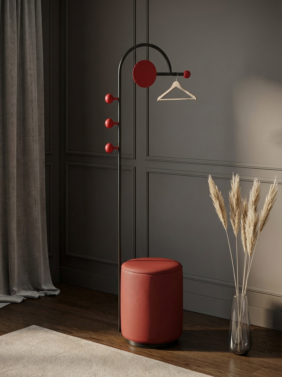 Аккуратный вариант для прихожей — модель с мягким пуфом у основания. Сразу решает проблему «куда
