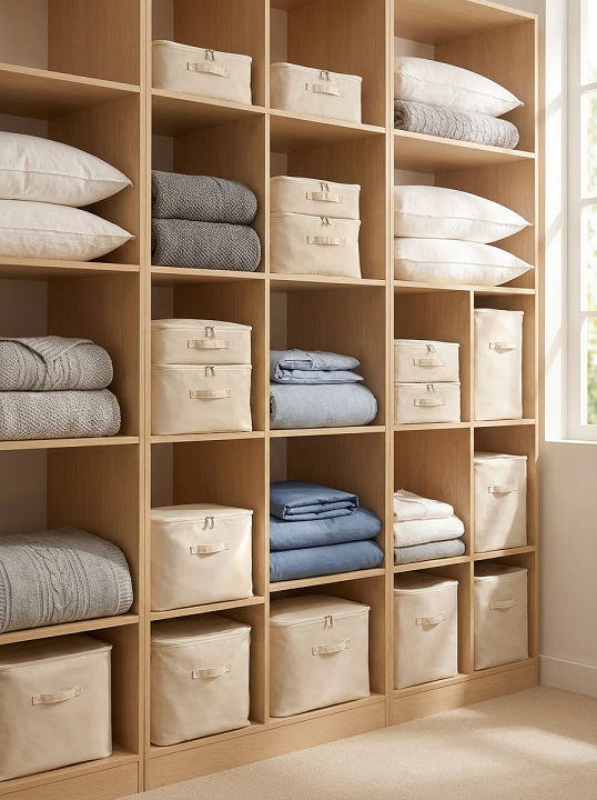 хранения из хлопка как раз решают эту задачу: они защищают вещи от пыли и влаги и помогают логично