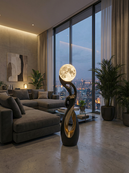 Вау-эффект: графичная композиция из современных геометрических форм и мягкого лунного света.