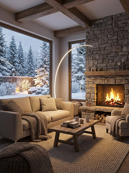 Лаконичная дуга с мягким свечением — идеальный спутник тёплых вечеров. Минимум деталей, максимум уюта: этот светильник словно продолжение зимнего пейзажа за окном.