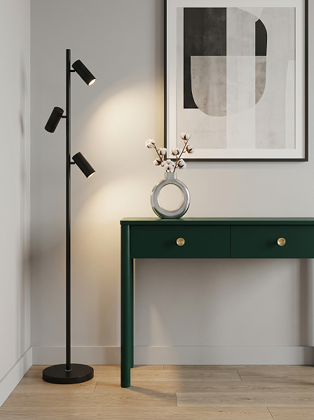 Современный торшер-спот с тремя направлениями света отлично впишется в рабочую зону или прихожую, где важны функциональность и компактность.